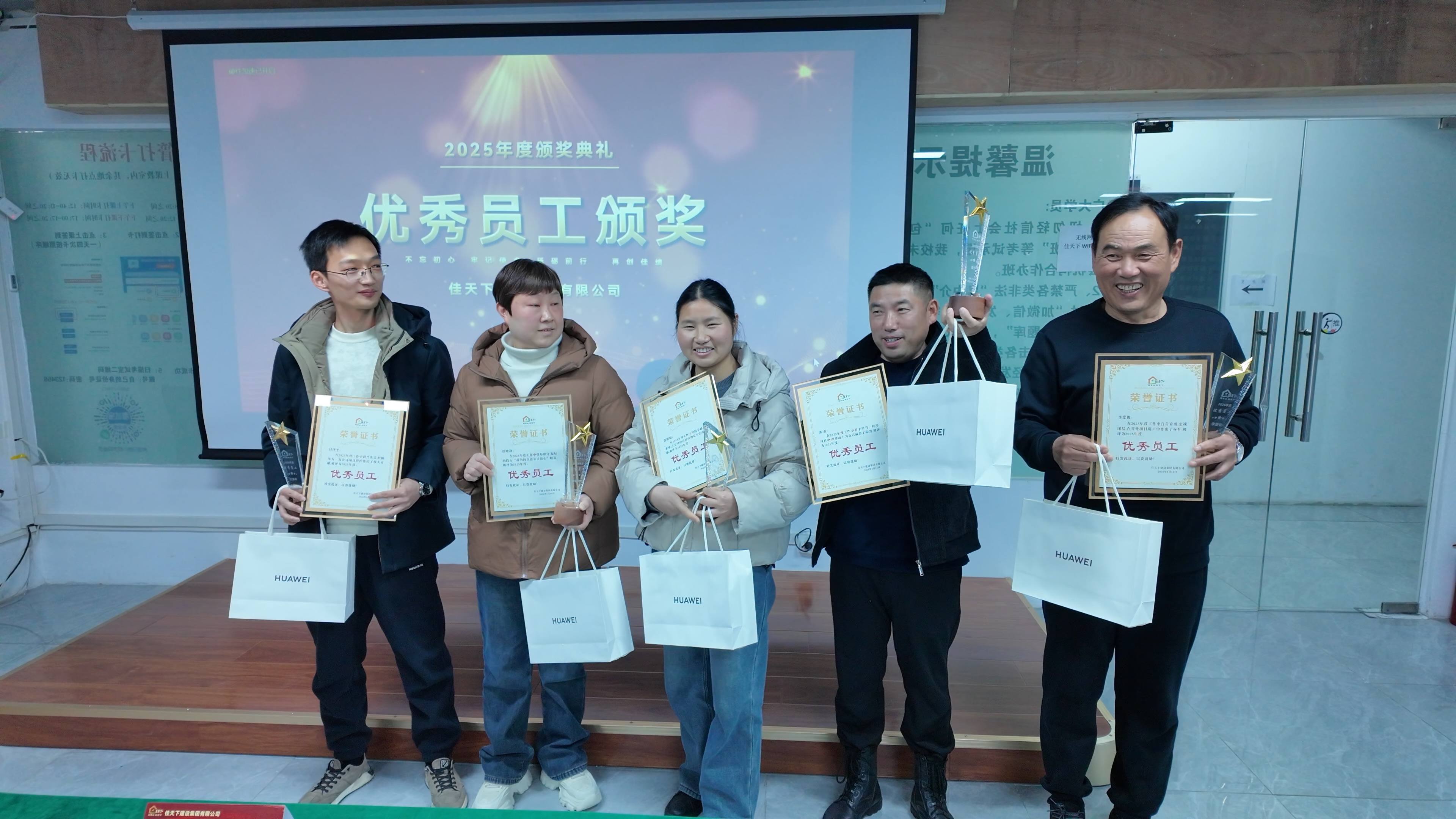 为优秀员工颁发证书、奖品